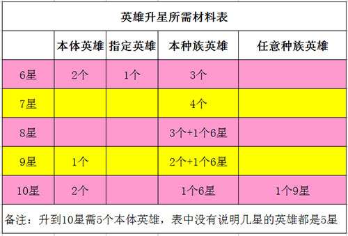 -英雄升星常识,如下图。升星所需要的英雄及数量要有所了解,可以提前准备。