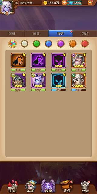 -开到的英雄碎片不要急于合成,放在碎片那更节省背包空间,用的时候再合成。开背包格子是很贵的,能节省就节省点。