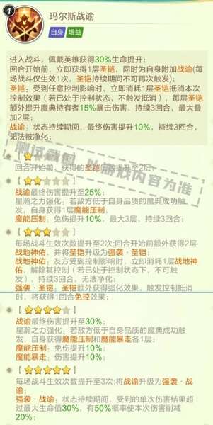 虽然在效果上不如直接的怒气抵挡,但进场生效全体一层也算不小的提升了,几乎能吃掉第一回合的1/4的伤害(只算大招哈,不算协战反伤)
