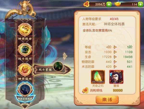 还有最后一个就是武将突破啦,每突破一阶,都可以对武将的全属性进行提升,而且最重要的就是还可以对武将必杀技等级的提升!而且想必各位在座的主公都是欧洲人,每次突破的时候都会触发直接升级的概率,大大的减少突破丹的消耗,不过突破值会在每天的24:00整准时清零,各位主公们要注意点喔不要浪费了突破丹。