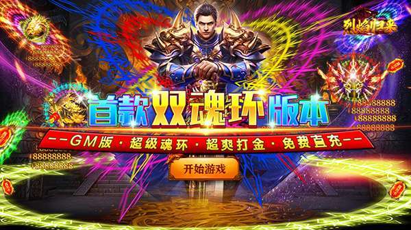 烈焰归来(GM双魂环打金)上线送极品魂环、护国大将军限时体验时装、热血神剑,无限福利每日壕领不停!超级魂环版,打造属于你的超级魂环,炫酷魂环技能,打爆一切;打金副本超高爆率,爆真充卡、稀有道具,每日多次副本次数!上线激活gm特权,快速开启gm商城,绝版时装海量材料无限领取!BOSS爆率全部上调1000%,无限爆真充,福利拉满在线打金!快邀请兄弟齐聚沙城,称霸全服!