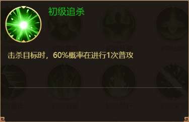 战法-追杀(初/中/高/特级追杀,使用物理技能击杀目标时,60%/70%/80%/90%概率再进行1次普攻)