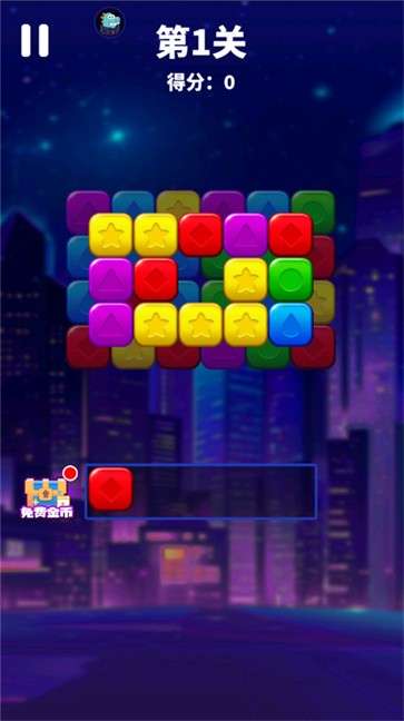 1、星星消除模式,主要通过消除方块获得分数,达到目标分数后可解锁下一关。