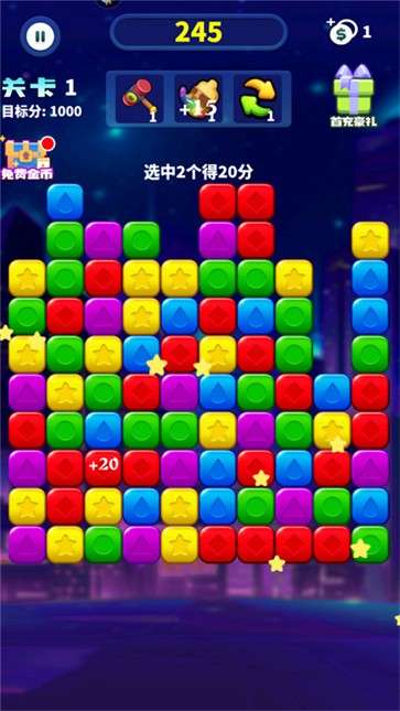 2、玩家只需点击两个或更多相连的同色星星方块即可完成消除。