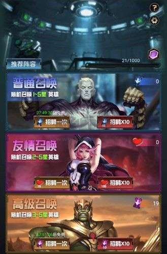 获取英雄最直接的方式,有普通、高级、友情三种召唤方式,每种召唤概率都不一样。