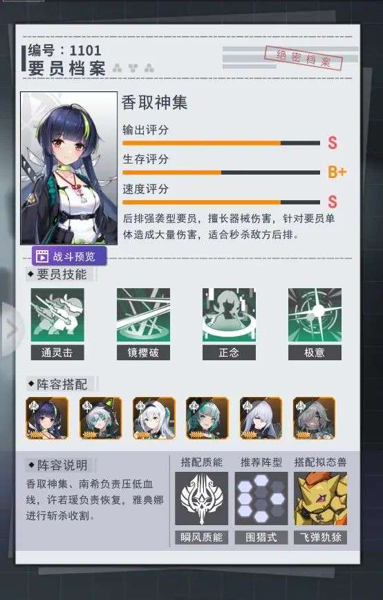 推荐理由:香取神集因其极快无比的二刀流剑术,被称为联盟至强之剑。香取神集一技能通灵击可对后排随机一名敌人发起突袭,造成器械伤害和真实伤害,而二技能镜樱破会对随机一名后排要员造成大量伤害。