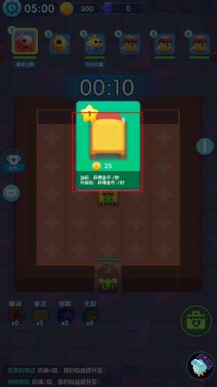2、床每秒会自动生产金币,金币可以用来升级床和其他建筑。