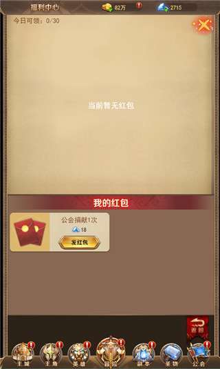 玩家在游戏中达成红包任务即可获得对应的红包,不同任务获取的红包数量、金额不同。红包保存在福利中心中,玩家可以发放红包,所有公会成员都可以抢。