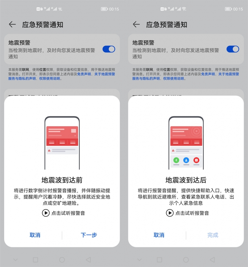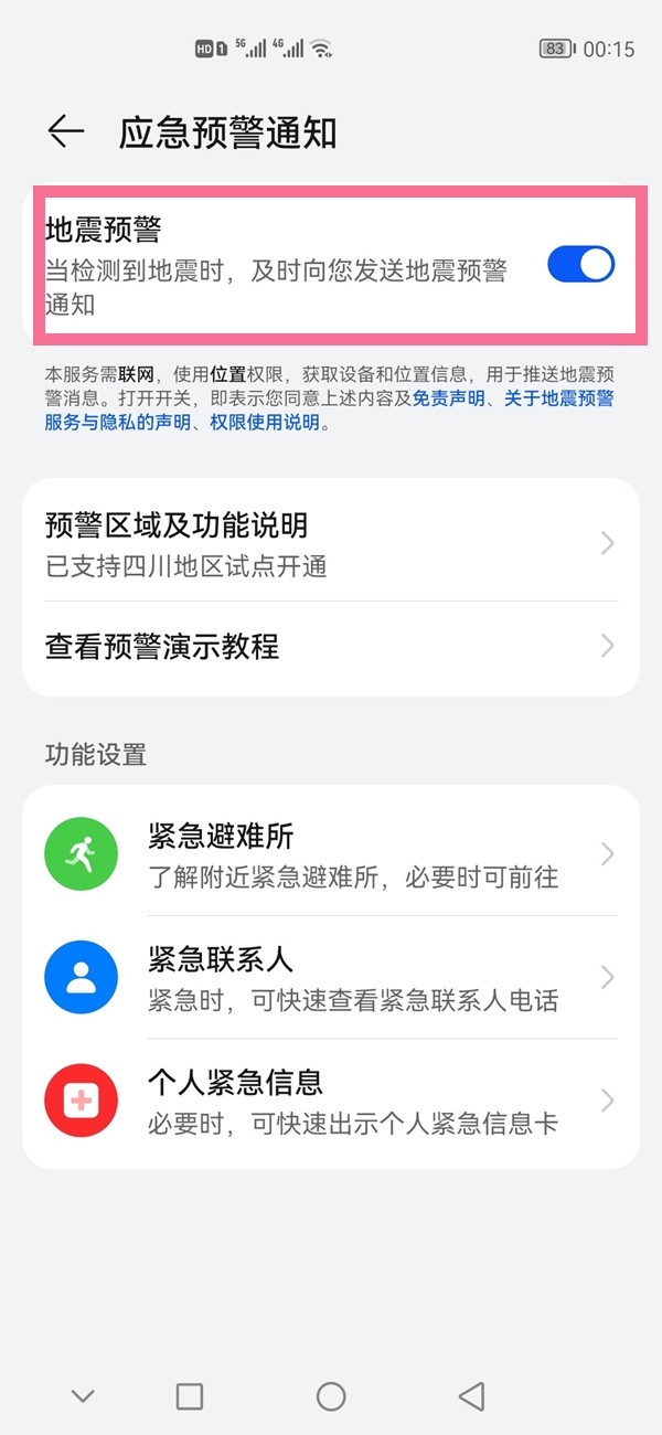 小编提示:手机地震预警,除了需要在设置中开启预警通知,还需要满足手机开启了定位,且支持地震预警地区。