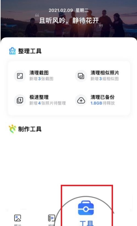 1、打开一刻相册APP,点击工具。