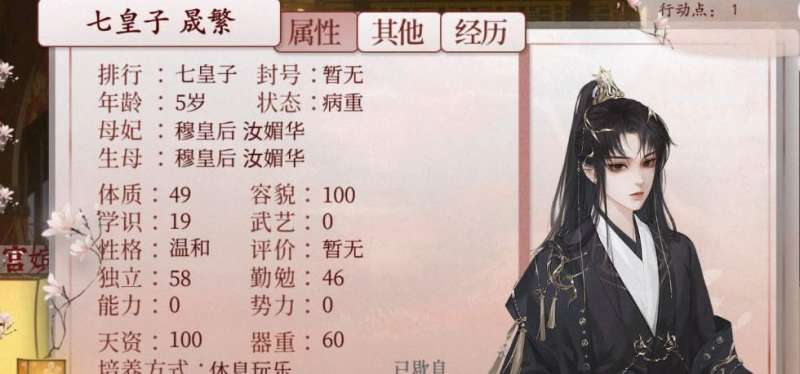 1、如果皇子的体质属性比较低的话,就会容易进入病重的状态,平时玩家可以通过实践来提升皇子的体质;