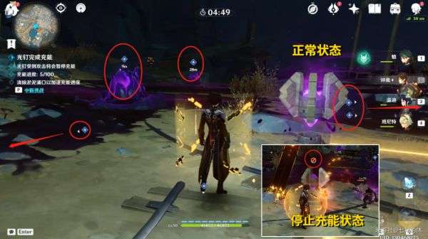 1.光钉被攻击了,在一段时间内会停止充能(所以,尽量保护光钉不会攻击,建议带控制角色,比如:风系聚怪,钟离,永冻队)