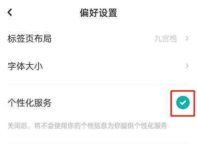 3、关闭个性化服务功能即可。
