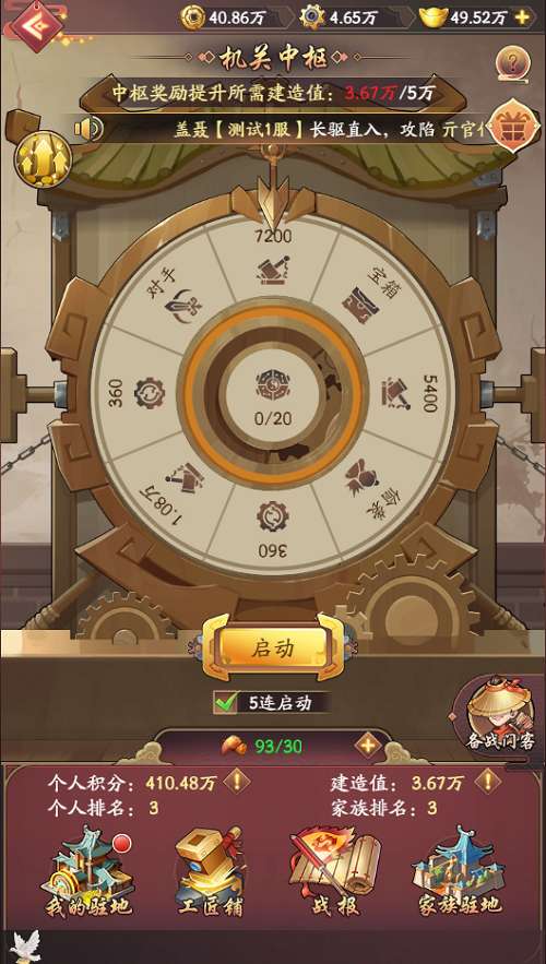 ②战斗规则:进攻目标为攻城/守城机关时,随机从备战门客中随机5个门客进行进攻(五局三胜,可调整出战顺序);进攻目标为铸币厂时,则直接胜利。
