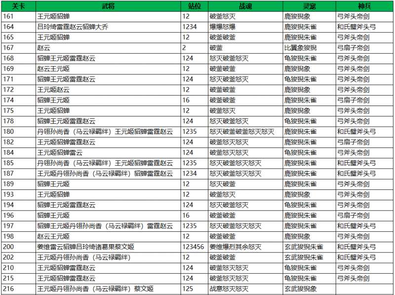 董卓貂蝉雷霆赵云 站位124 神兵:斧头弓帝剑 灵宠:玄武狻猊朱雀 战魂:全怒灭