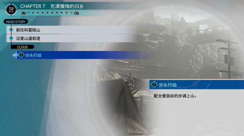 1、首先将剧情推进到游戏的第七章充满懊悔的故乡的分头行动的位置。