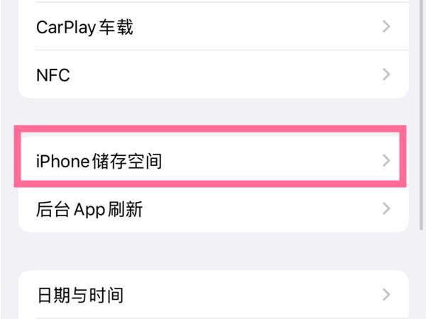 2、找到【iphone储存空间】。