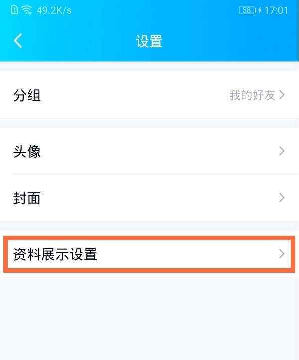 2、点击【资料展示设置】。