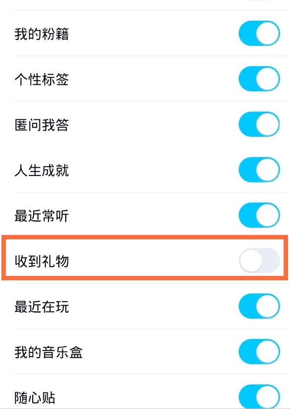 3、开启【收到礼物】右侧开关即可。
