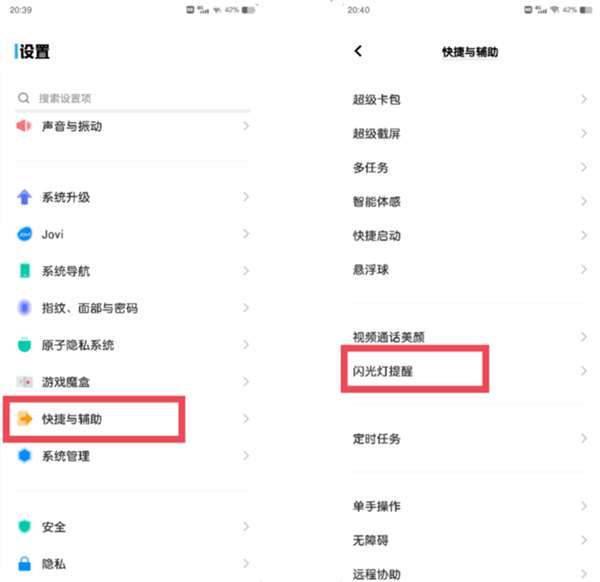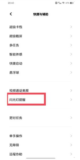 1、从设置菜单中找到快捷与辅助,点击闪光灯提醒。