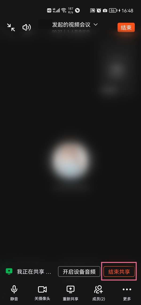 2、发起屏幕共享后,点击结束共享即可。