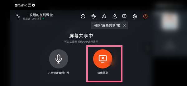 钉钉在线课堂退出屏幕共享方法: