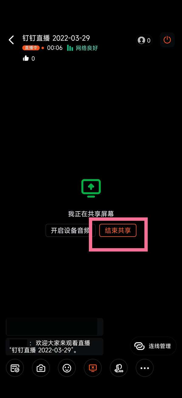 钉钉群直播退出屏幕共享方法: