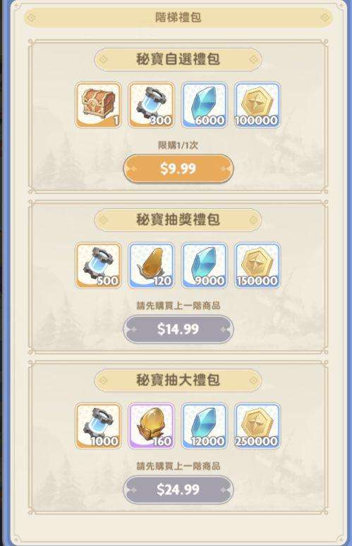 且注意,该礼包仅在解锁秘宝后才会出现,开服第一天大概是看不见的