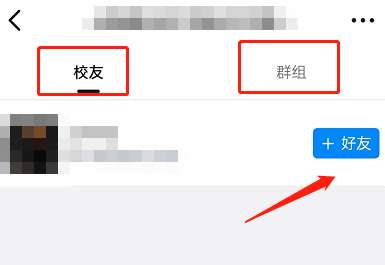 4、选择校友或者群组,添加好友、添加进群即可。