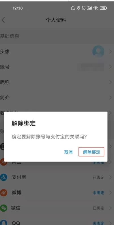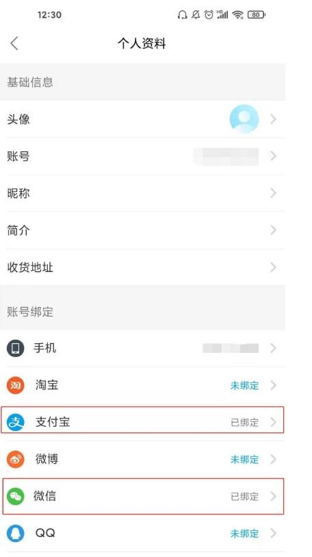 2、在账号绑定下面点击支付宝和微信,进行解除绑定。