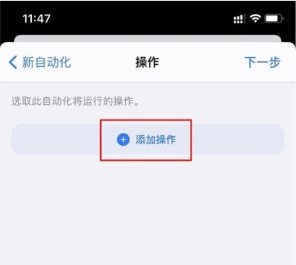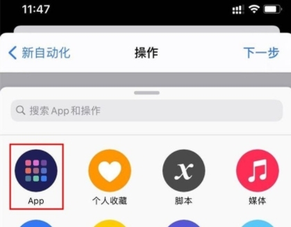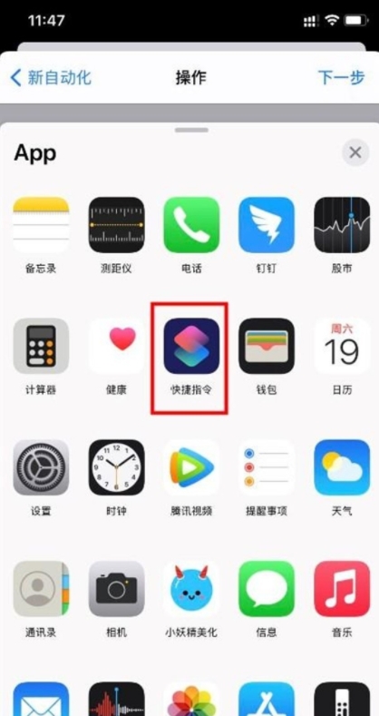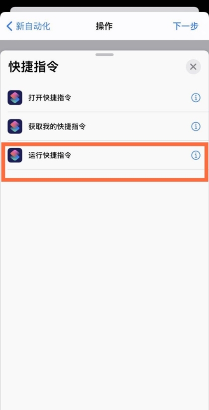 4、点击添加操作,点击app,选择快捷指令,选择运行快捷指令。