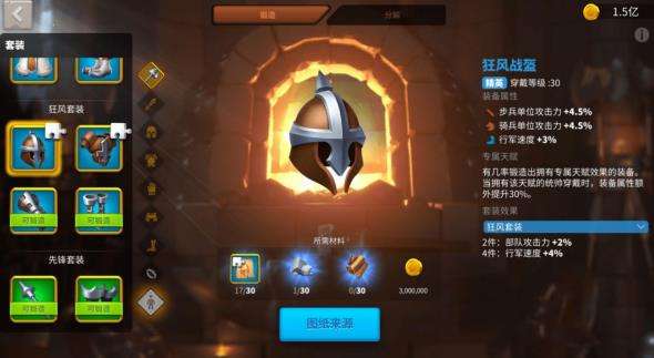 首先,我们可以参加一些特殊的活动,在特殊活动期间,比如说国庆节、春节等活动,我们都有机会通过完成指定的任务和挑战来获得套装的部件或是图纸。第二种是在商城只能够我们可以用金币来买道具和资源。在指定的时间,商城就会推出该套装的部件和图纸,但是价格一般都是比较高的,比较适合愿意投资的玩家。第三种是收集图纸和一些必要的资源在铁匠铺中打造套装。资源可以通过战斗、交易或者是采集获得,同时完成某些人任务,参加一些联盟活动也有机会获得装备或是图纸。