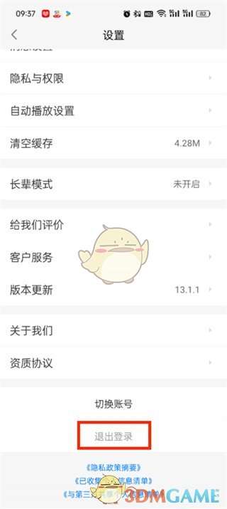3、接着来到设置的页面中点击页面最下方的【退出登录】按钮;