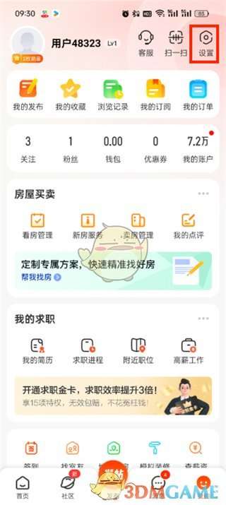 2、然后在我的页面中用户们需要点击右上角的【设置】按钮;