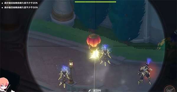 2、在两个敌人的旁边有一个炸药桶,需要将炸药桶进行打破。
