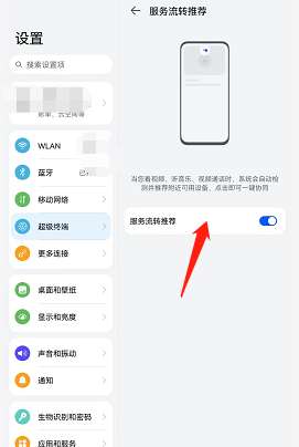 3、选择【服务流转推荐】右侧按钮开启即可。