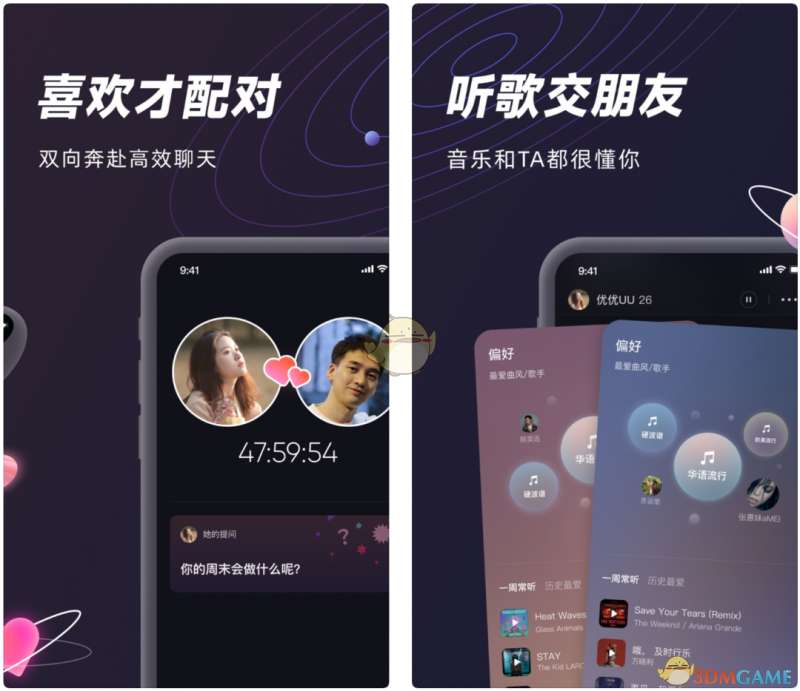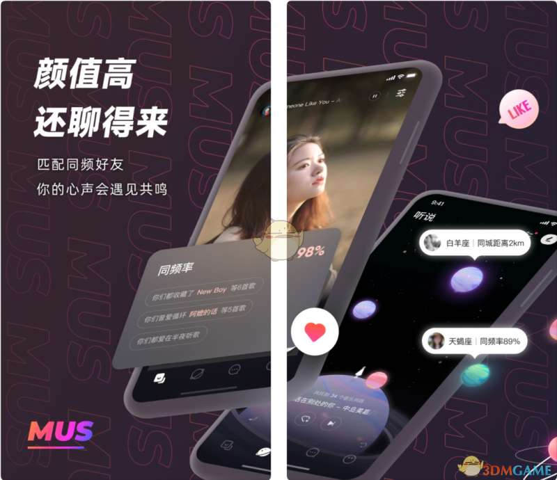 1、MUS主打社交玩法,通过音乐认识性格和兴趣相契合的好友,具体则是基于系统对用户听歌数据的解析,比如双方收藏歌曲是否相同、循环的歌曲是否大部分相同,以及听歌时段是否相近等,再通过匹配机制为用户匹配到同频共振的人。