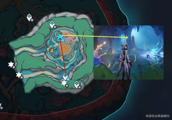 29:从传送锚点直接往东方向游一点距离就可以往左边的洞口进去了,神瞳就在洞口里面;