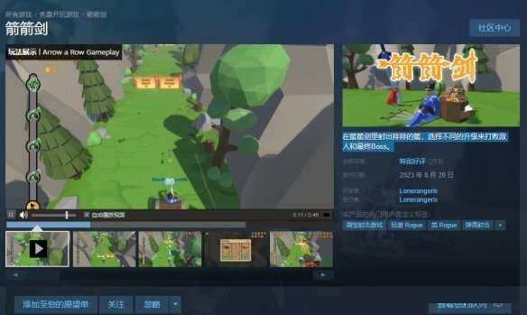近日最新消息,轻度射击类游戏《箭箭剑》现已在Steam免费发售,本作是由Lonerangerix制作,主打射箭攻关打Boss,操作简单玩法有趣,并支持简体中文。