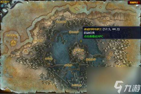1、首先我们来到冰冠冰川坐标(57.5,44.3)处找到虔诚的阿布萨兰接取任务。