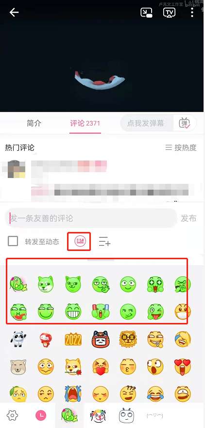 方法一:在软件内随便点击一条视频,点击评论,找到表情就可以看到绿色的表情啦。