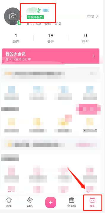 打开哔哩哔哩点击我的页面。在上方就能看到变绿色的名字,下面还有一个绿色的“年度小会员”文字。