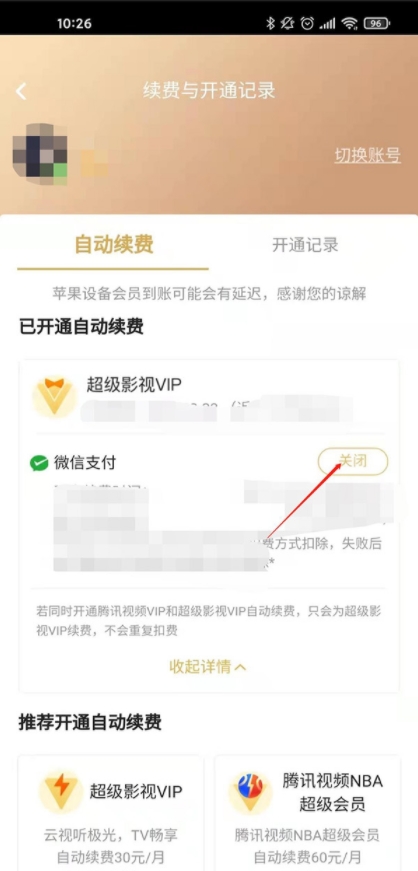 3、点击腾讯超级影视VIP右边的【关闭】即可。