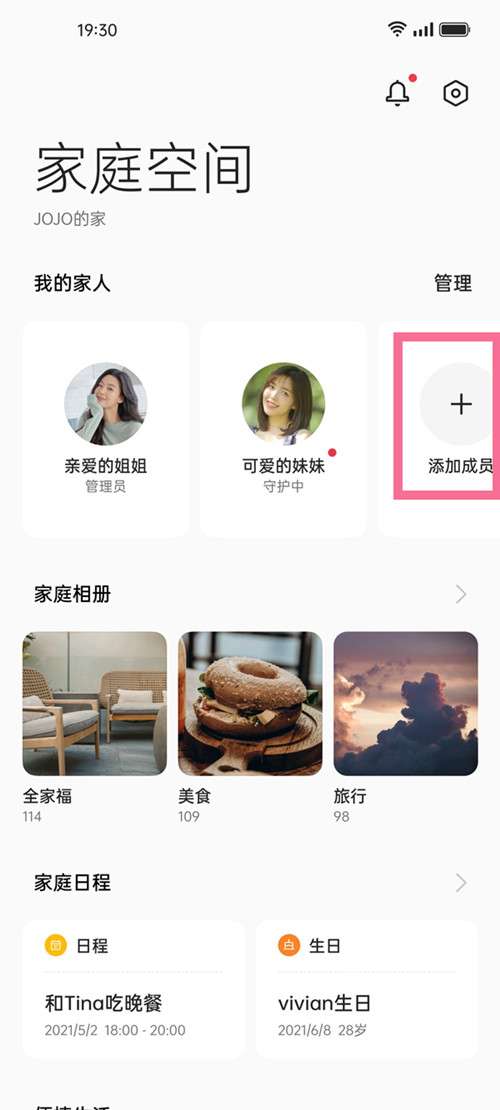 2、创建家庭后,点击添加成员,然后用家人的手机扫描二维码即可加入家庭。