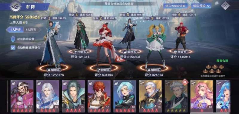 要打造一支强力的风系敏捷攻击队伍,关键在于结合快速行动与瞬间爆发力,迅速穿透敌人的防御。所以推荐大家搭配的阵容是小舞、朱竹清、风笑天、弗兰德、智林和宁风致。在这个组合中,小舞担任主要的输出角色,她以卓越的物理攻击力精准地击破敌方的关键单位。朱竹清则作为辅助输出,她的技能可以在战场上迅速清理敌方的残血单位。风笑天以其高速和强大的群体攻击技能,能够有效地对敌方造成压制,其范围伤害能力可以针对敌方的整体阵型进行打击。