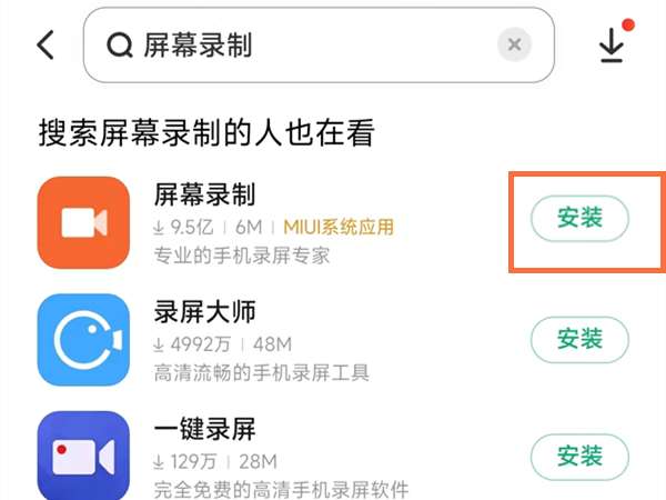 2、找到MIUI系统应用的屏幕录制,点击安装即可。