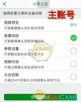 3、设置需要分享的设备权限后,点击下方的“生存分享码”