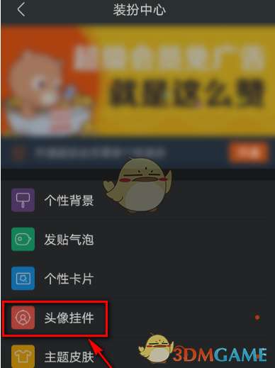 2、点击头像挂件。