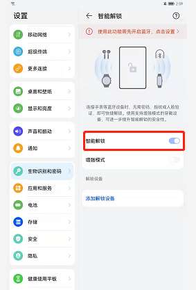 3、根据指示开启蓝牙后,开启智能解锁右侧的按钮就可以了。