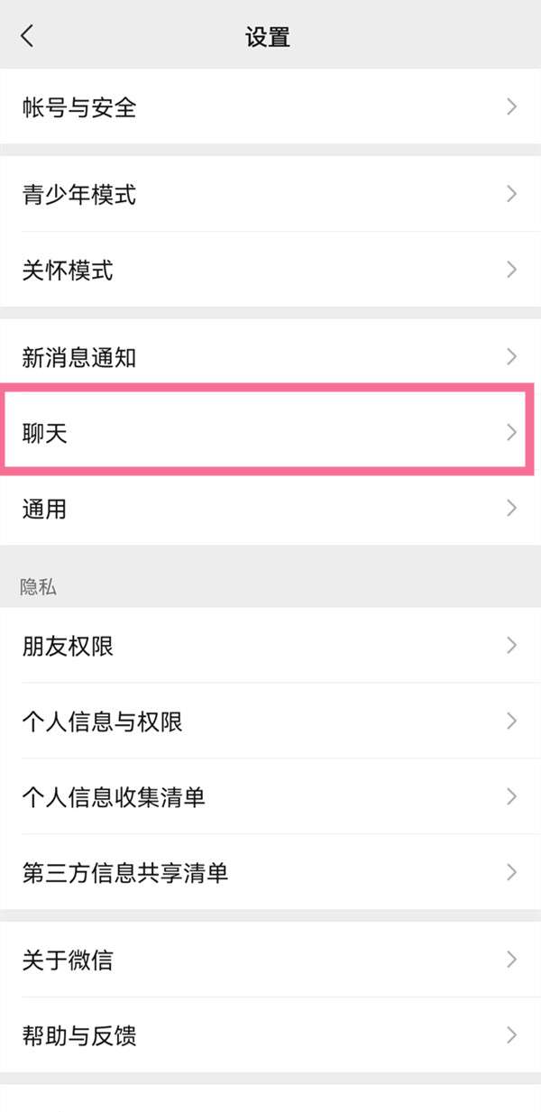 2、然后在设置页面点击【聊天】选项。